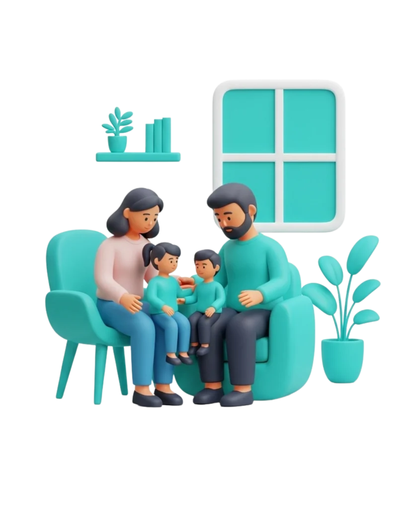 Aile içi iletişimi güçlendirerek, ebeveynlik süreçlerinde ve zorlu dönemlerde rehberlik ediyoruz. Evinizdeki dengeyi, huzuru ve güven ortamını yeniden inşa etmeniz için profesyonel destekle yanınızdayız.